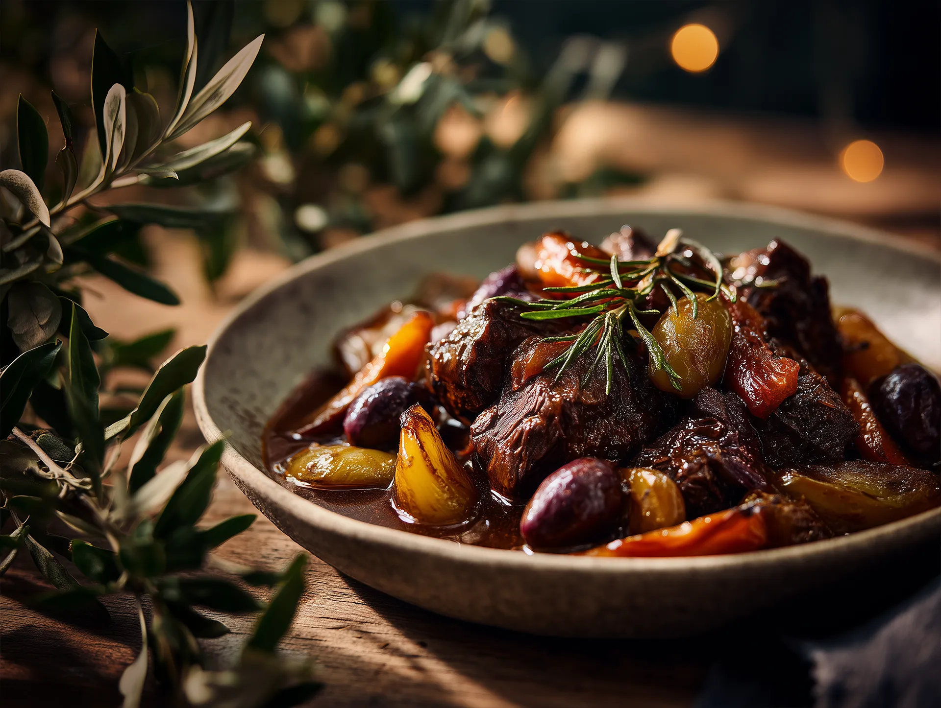 1. מניחים בקסרול שמן זית קורנייקי, סוגרים את הבשר מכל צדדיו ומטגנים את כל הירקות ביחד עד לקבלת צבע זהוב.