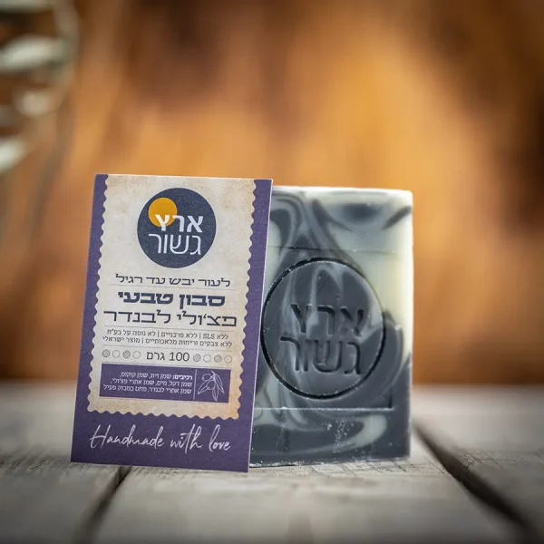 רכיבים: שמן זית, שמן קוקוס, שמן דקל, מים, שמן אתרי פצ'ולי, שמן אתרי לבנדר, פחם במבוק פעיל.