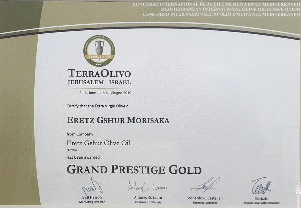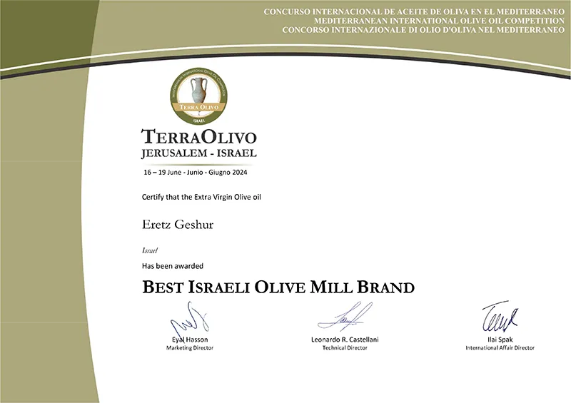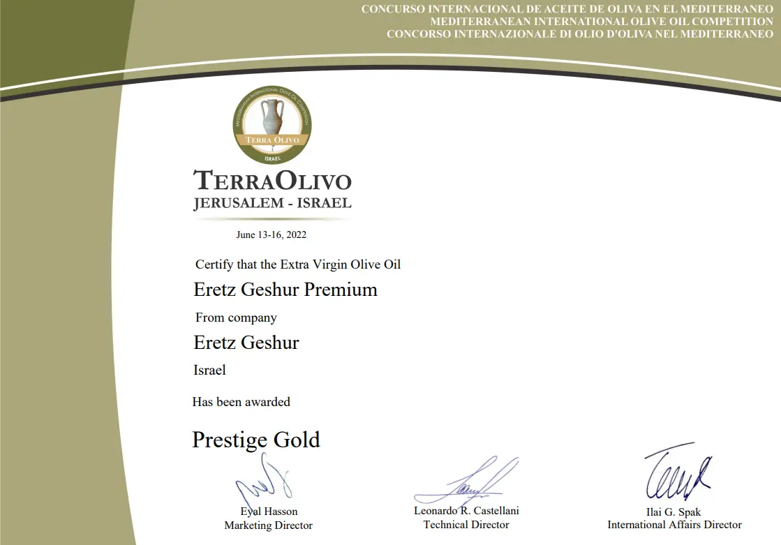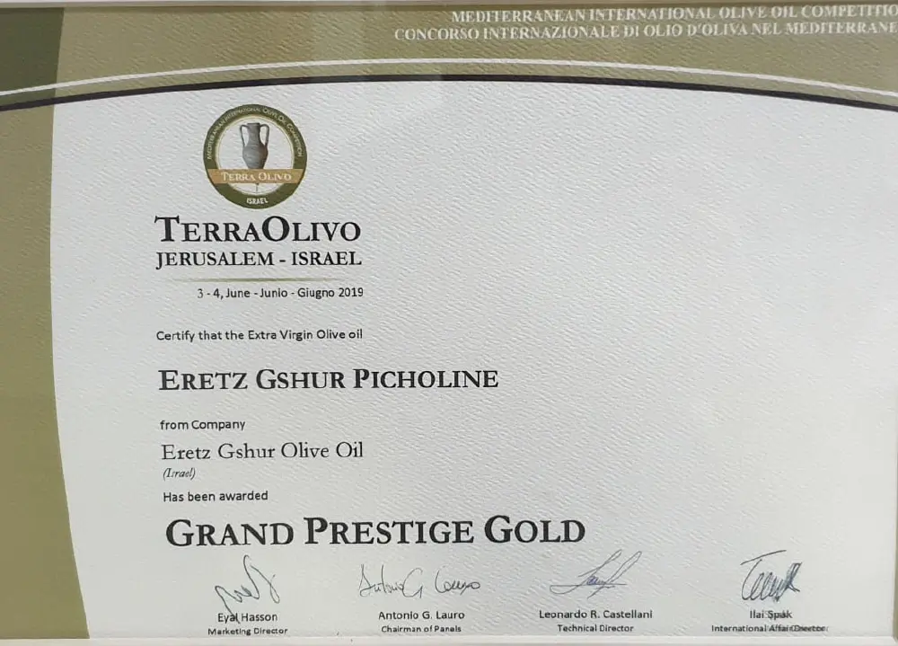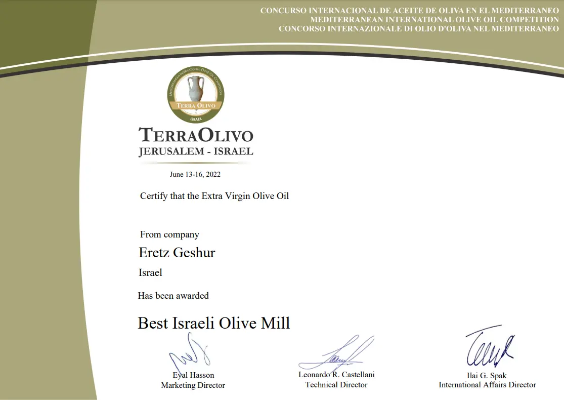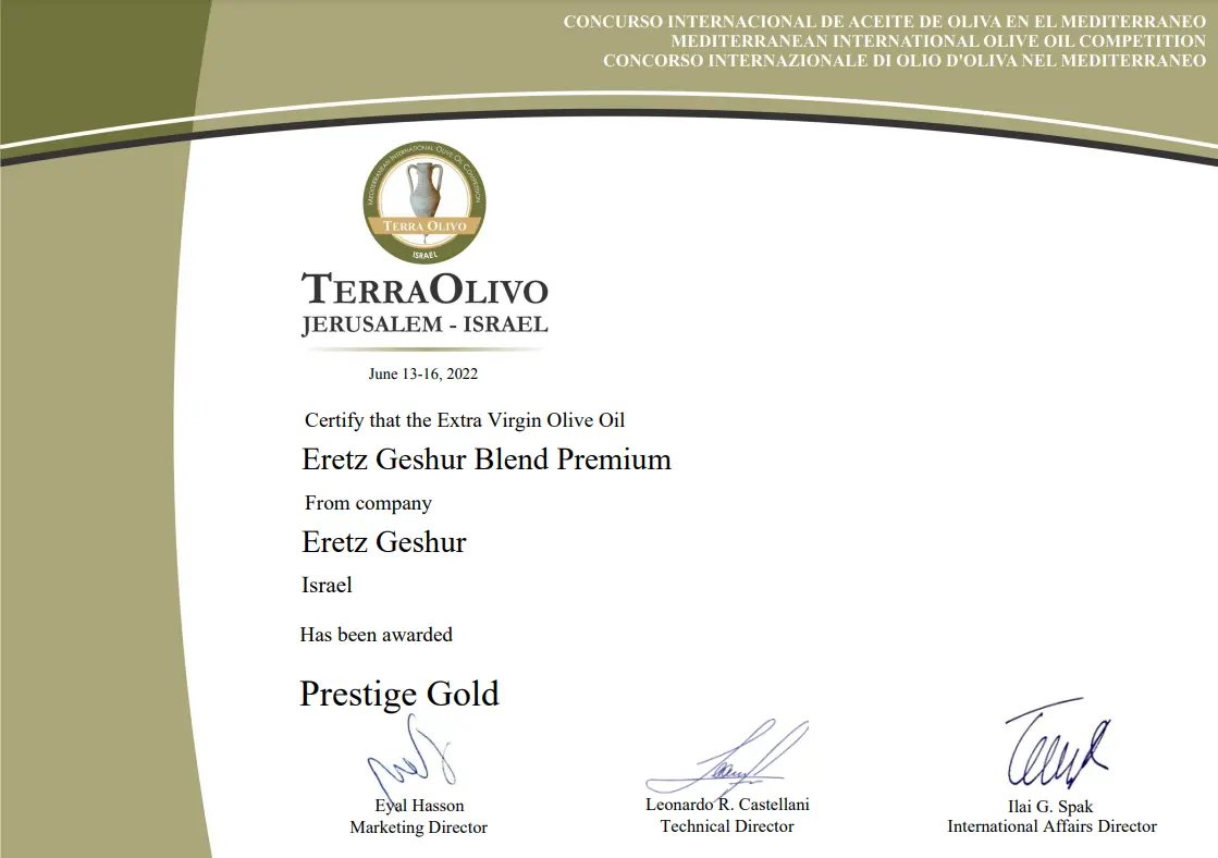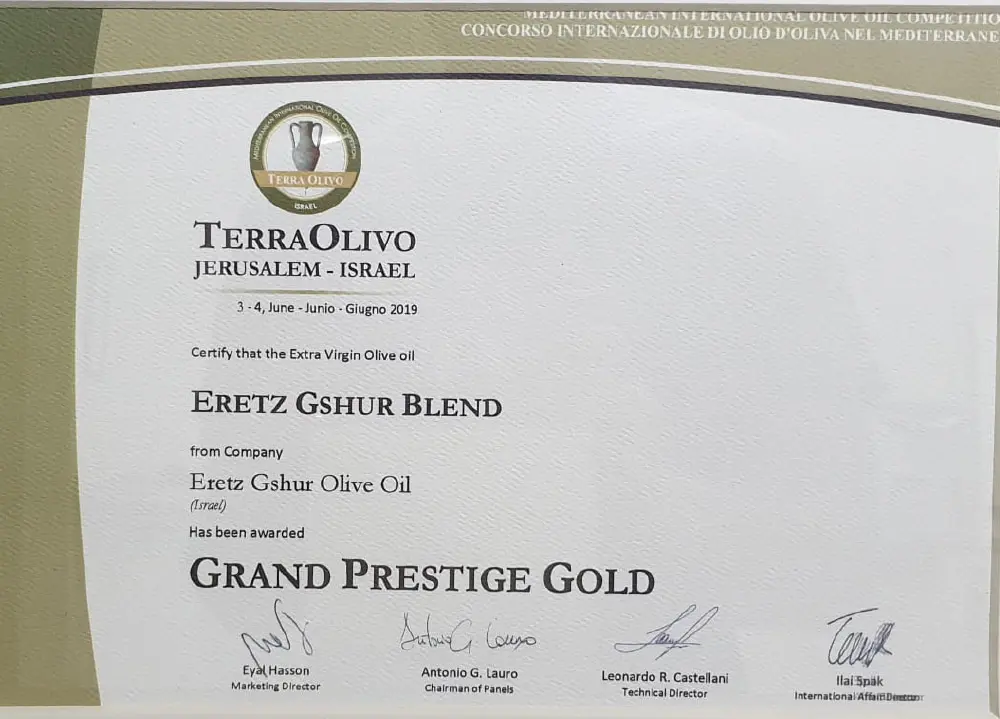 פרס מיוחד עבור שמן זית כתית מעולה הכי טוב בארץ ישראל