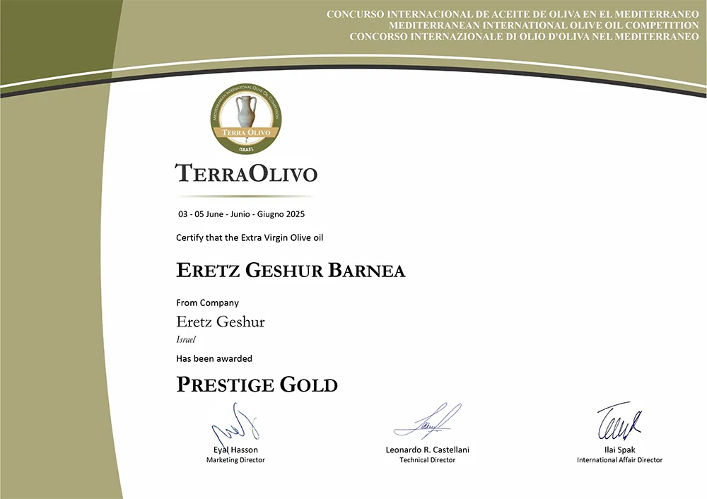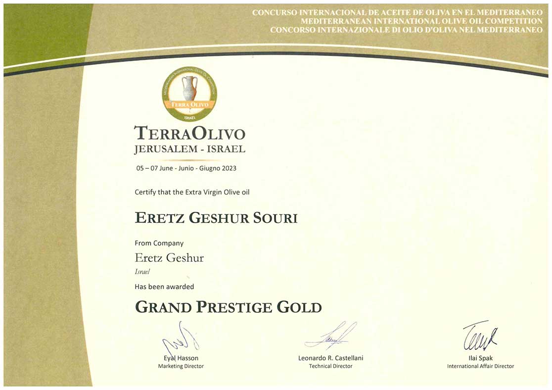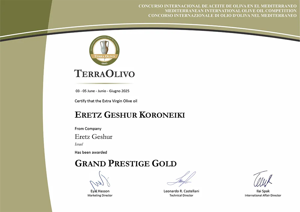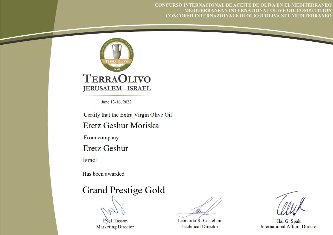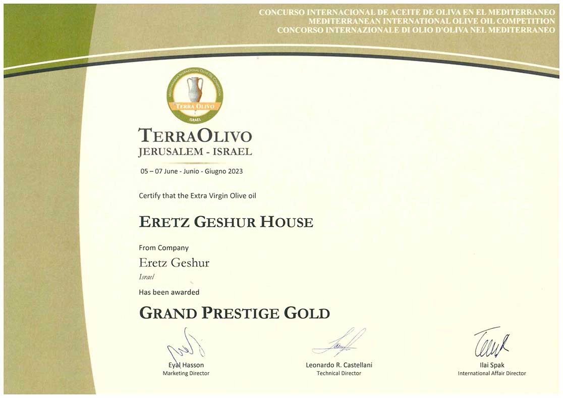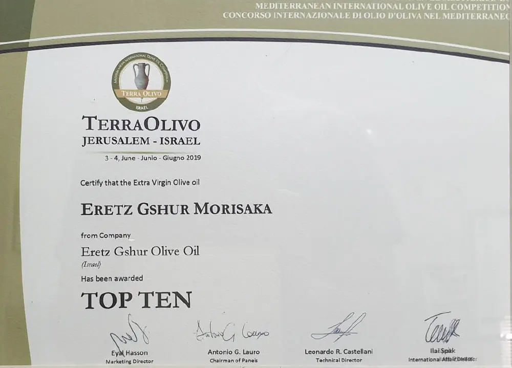 פרס מיוחד עבור שמן זית כתית מעולה הכי טוב בארץ ישראל
