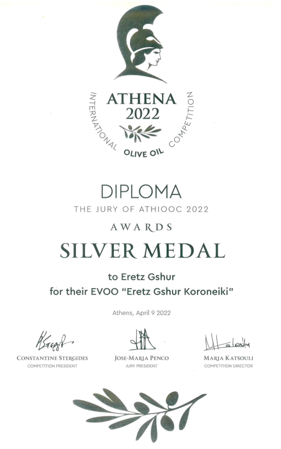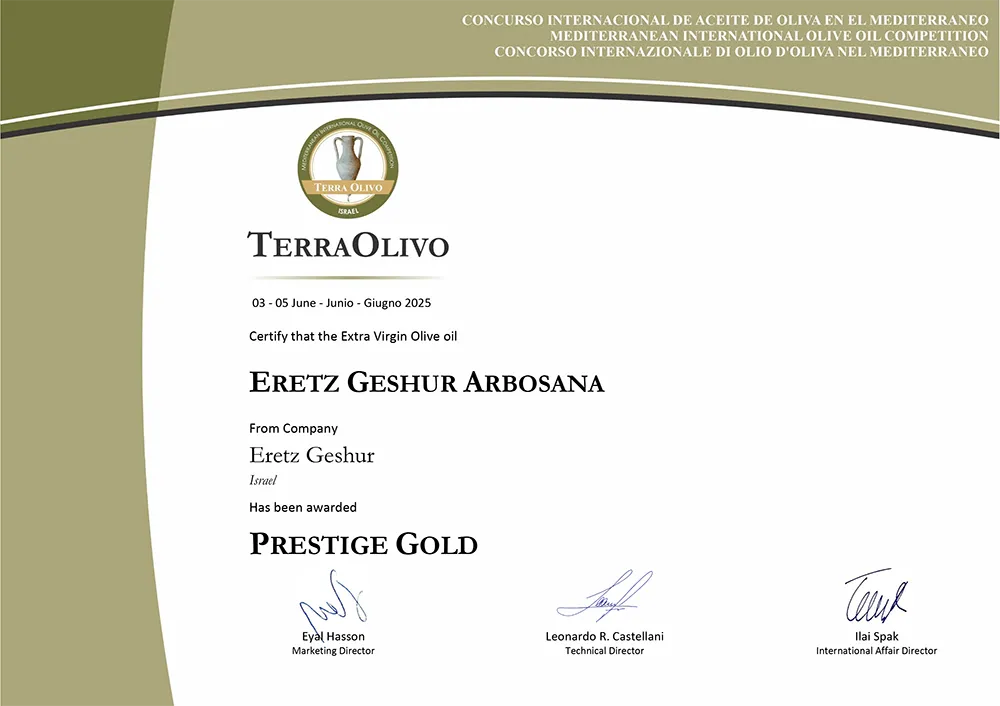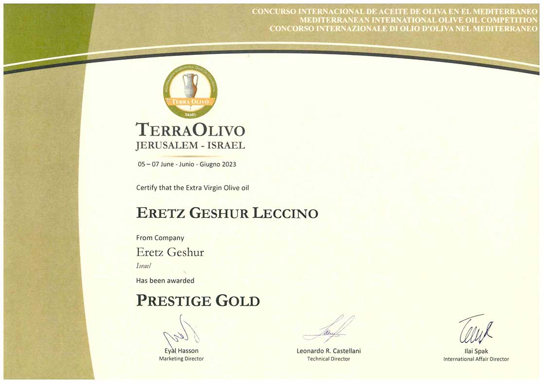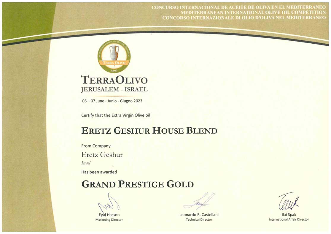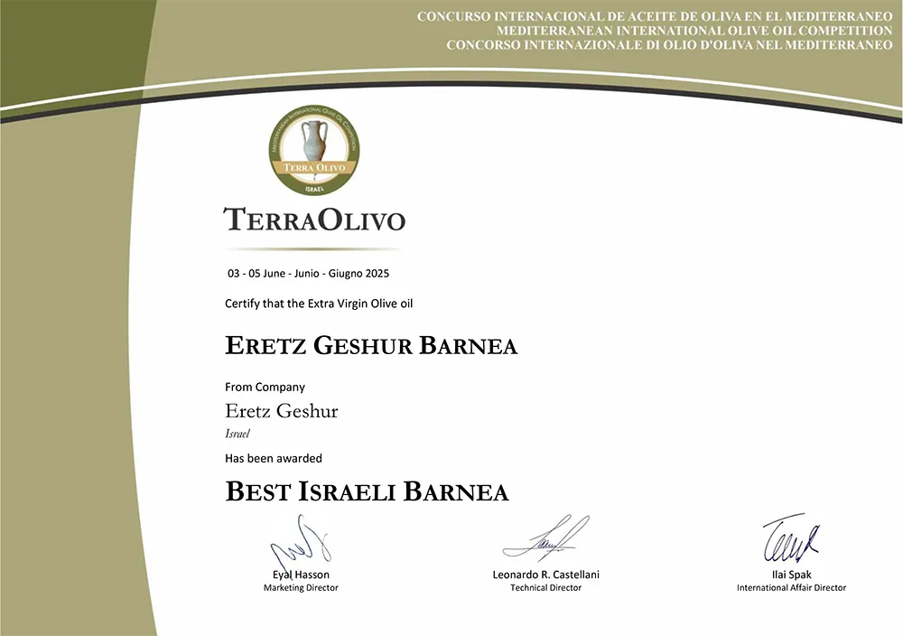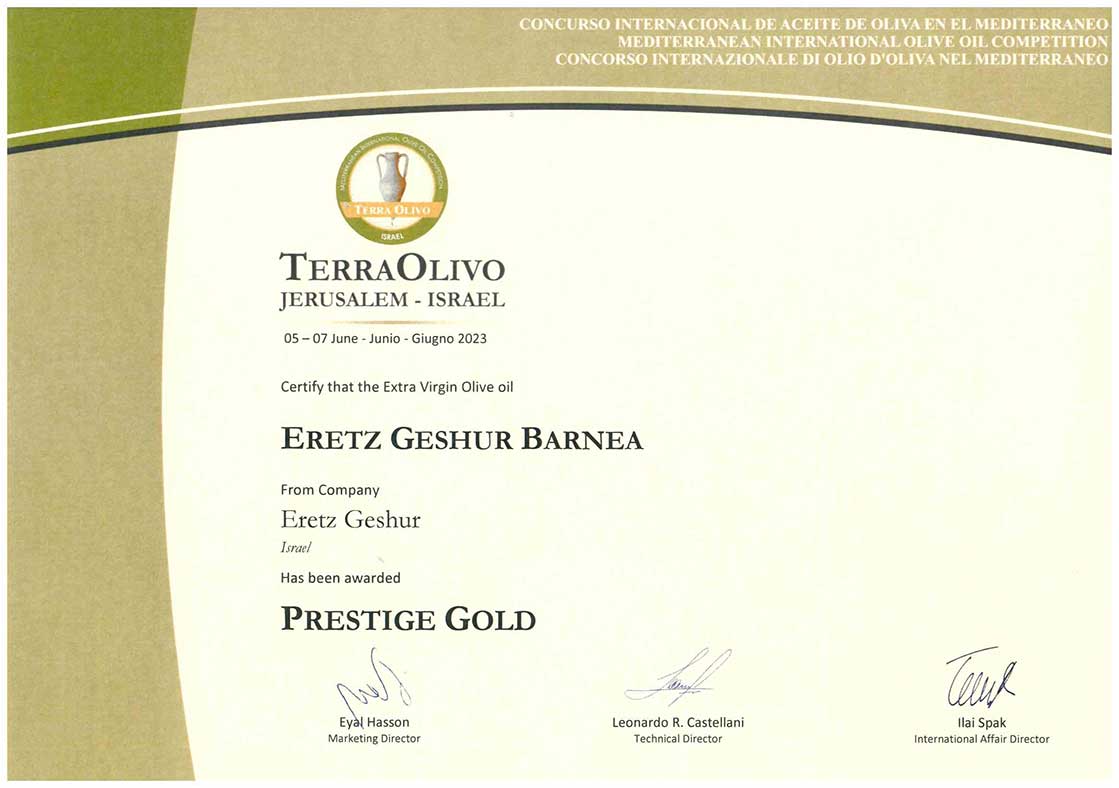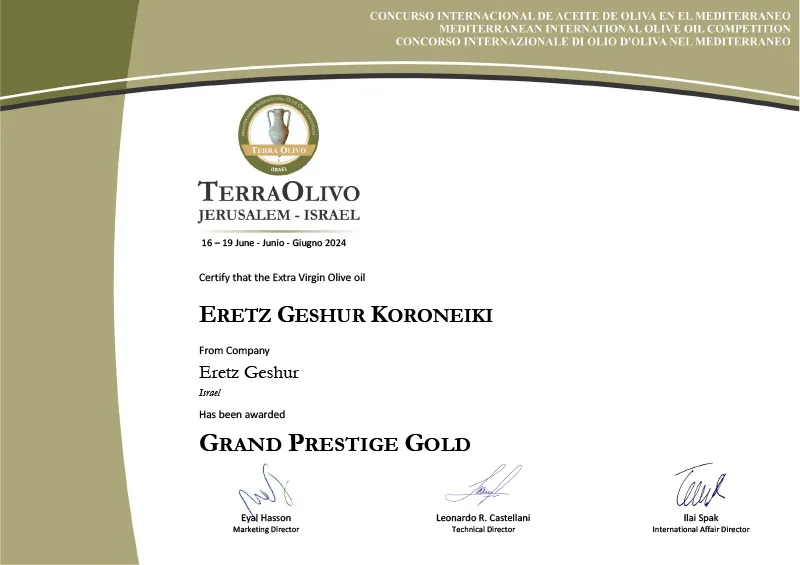 פרס מיוחד עבור שמן זית כתית מעולה הכי טוב בארץ ישראל