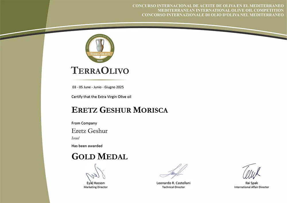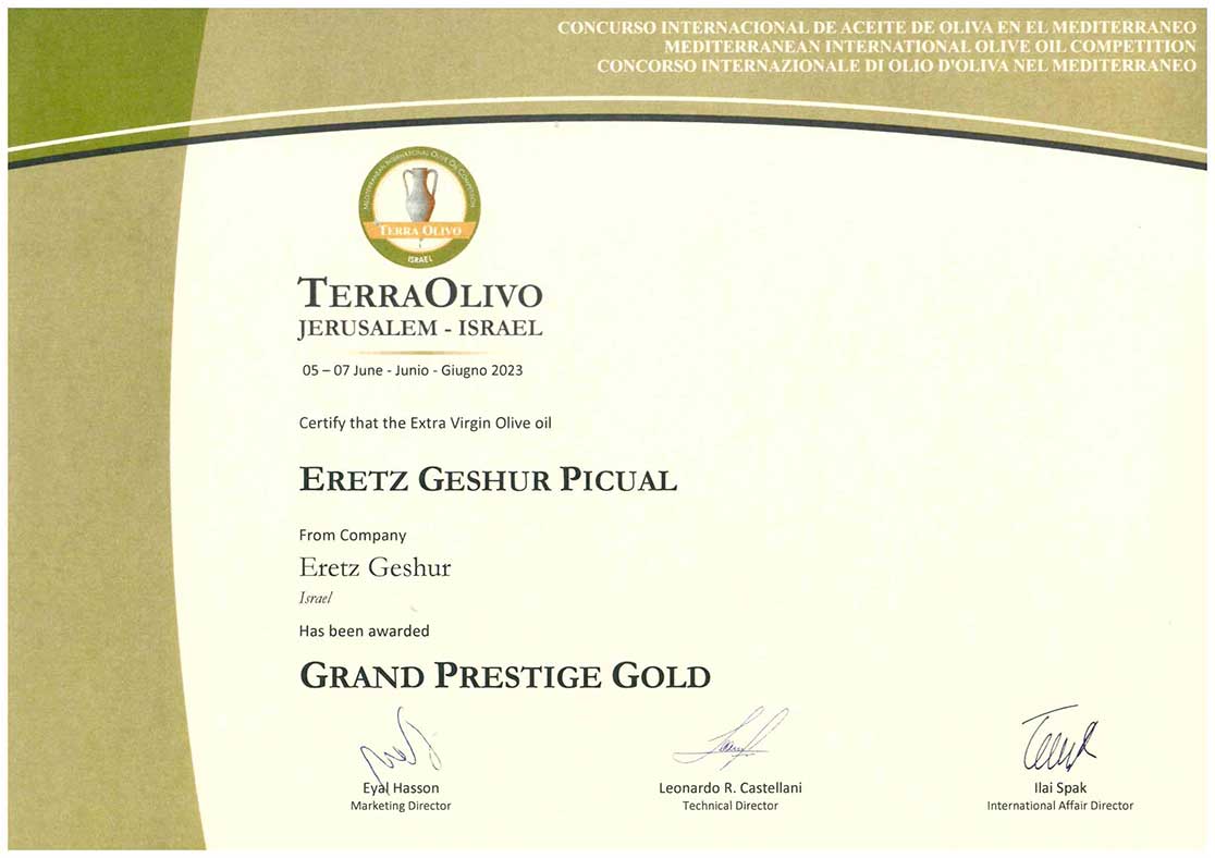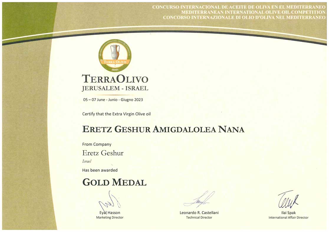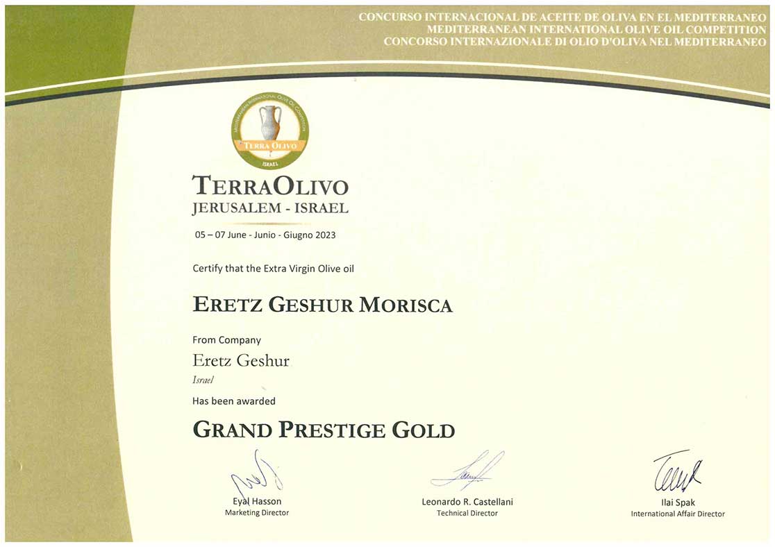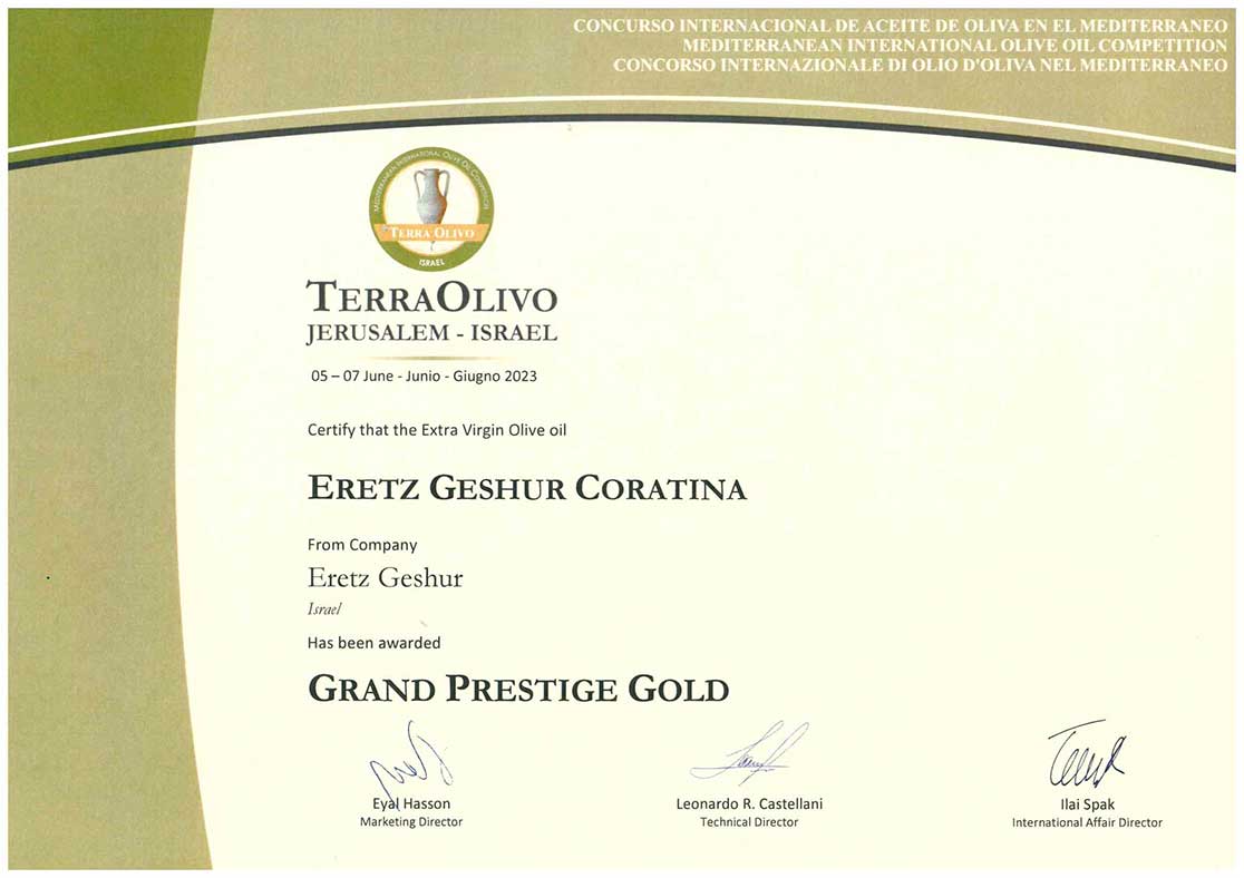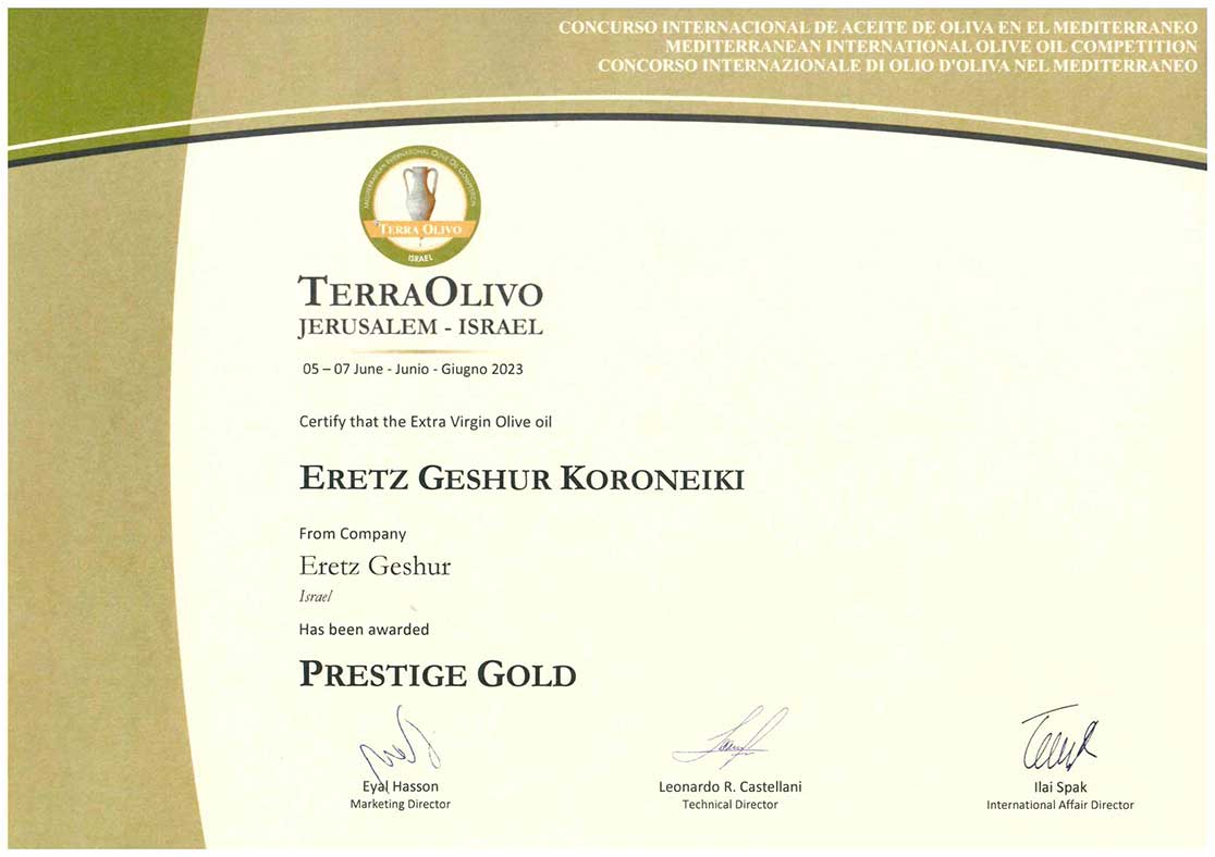 פרס מיוחד עבור שמן זית כתית מעולה הכי טוב בארץ ישראל